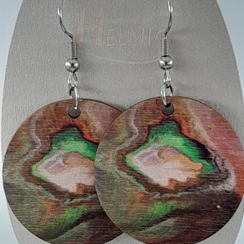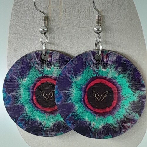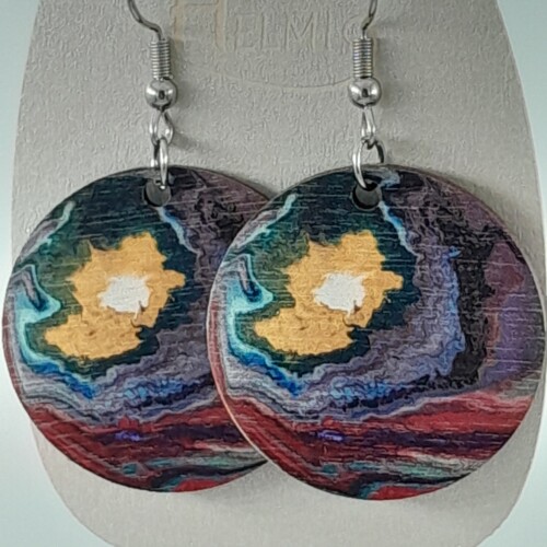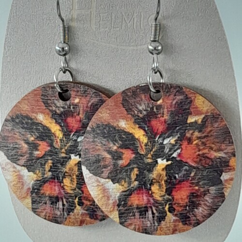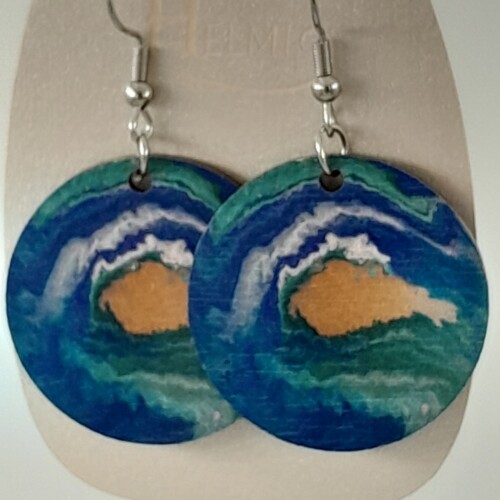 ovat käsityönä Suomessa valmistettuja koruja, joiden kuvat ovat peräisin omista akryylimaalauksistani. Kuva on tulostettu pohjamaalatulle kotimaiselle ∅3cm koivuvanerille UV tasotulostimella ja päällä on kevyt suojalakkaus. Koivuvaneri on 2mm paksu ja erittäin kevyt materiaali, joten korvakorut ovat ihanan kevyet pitää. Korvakorujen koukut ovat kirurginterästä RST L316 (Suomessa testattu).