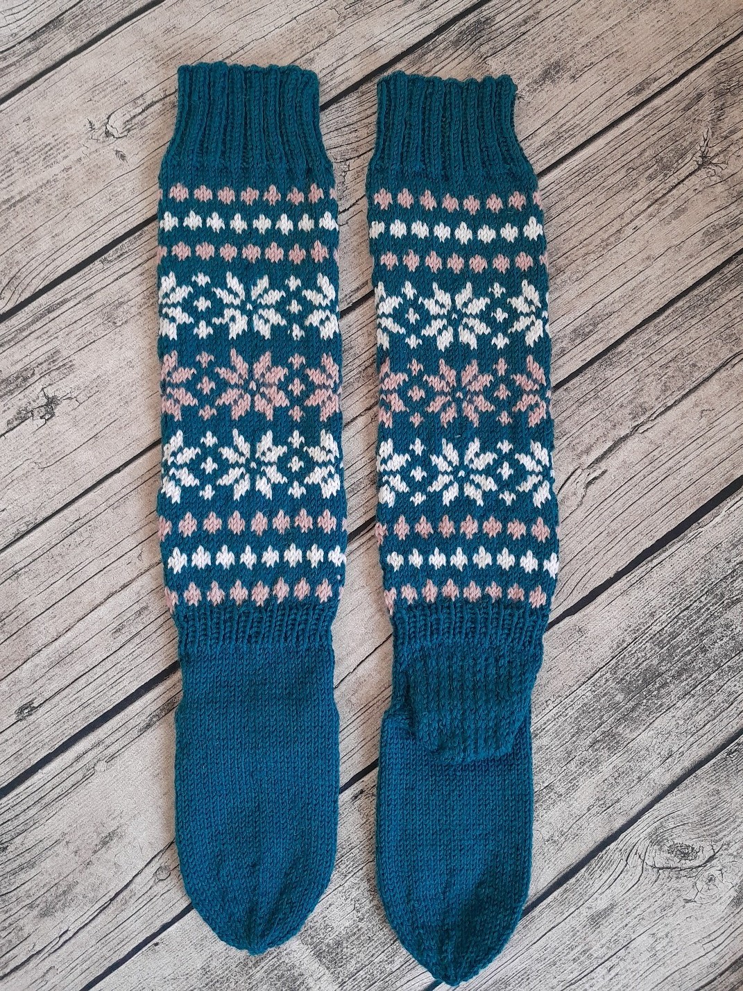 Pitkät villasukat, varren pituus n. 40cm koko n. 38.
